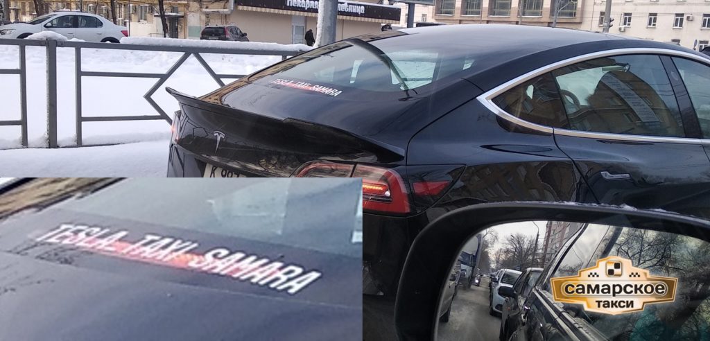 На фото есть надпись, по которой можно судить, что данный электрокар — это автомобиль службы такси TESLA_TAXI_SAMARA
